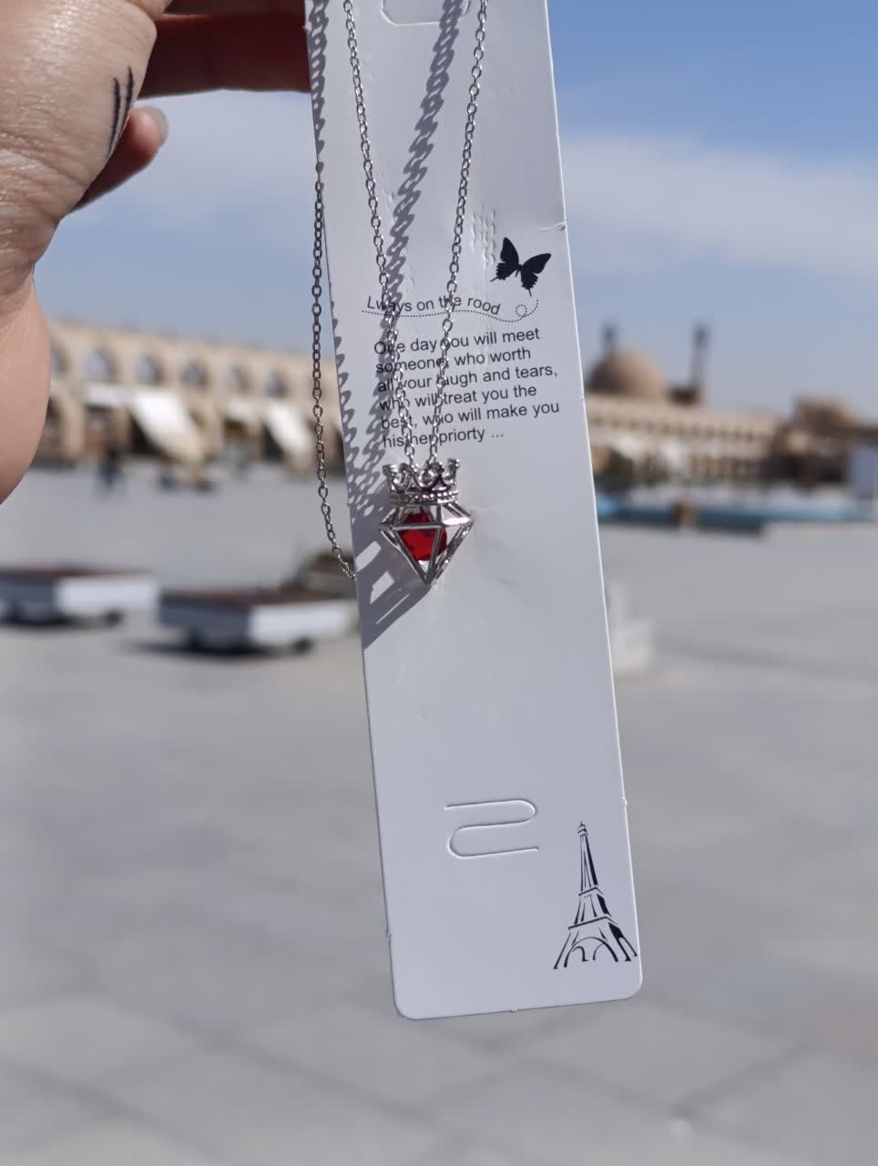 گردنبند سوارسکی طرح تاج و الماس♦️ جواهری زنانه همراه با زنجیر استیل و رنگ ثابت و ضدحساسیت ✅