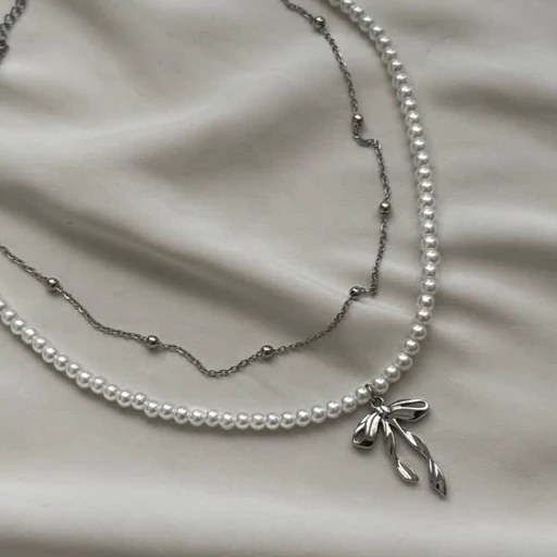 این گردنبند شگفتانگیز، با طراحی دو لاین (دو زنجیره) و ترکیب بینظیر پاپیونهای ظریف و مرواریدهای درخشان، استایلی کلاسیک و در عین حال مدرن به شما میبخشد.